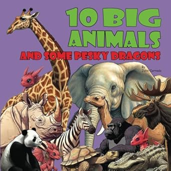In this colorful book we look at 10 different types of big animals while repeatedly getting interrupted by some baby dragons.