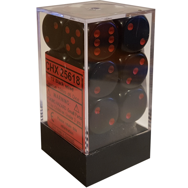 Chessex - 25618 D6 Cube 16mm Black Dice w/ Red Pips