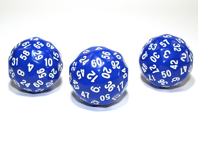 Use them to count the seconds, the minutes, or anything else that comes to mind! These bright-colored dice feature numbers from 1 to 60. Each die measures approximately 35mm across - truly a big ball of dicey goodness!
