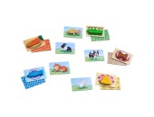 What does a cat, a tortoise, or a mouse eat? And which foods taste best for a rabbit or a dog? The children can work together or apart to find out in this collection of small games. Match the animal cards, wooden food pieces, cut-out cards, and color cards together to feed all the pets. They’ll have the animals nibble, munch, and crunch all their food up in no time! Play together and work on colors, shapes, and animals with this collection of small games.