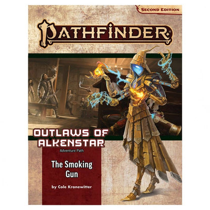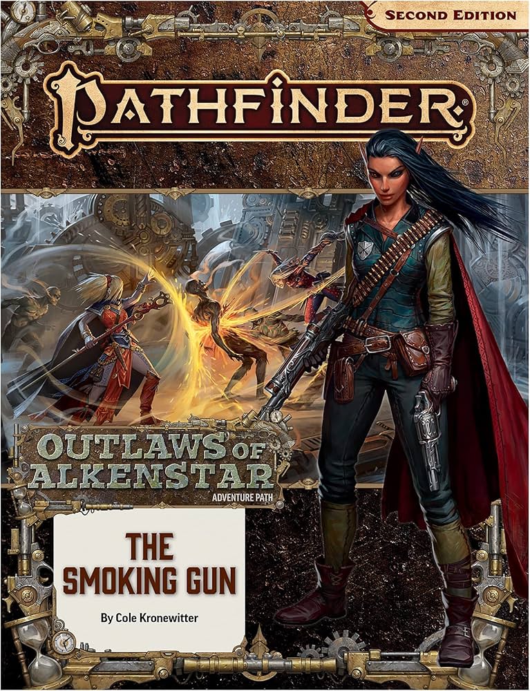 “The Smoking Gun” is a Pathfinder adventure for four 8th-level characters. This adventure concludes the Outlaws of Alkenstar Adventure Path, a three-part monthly campaign in which a band of outlaws unravel an explosive criminal plot in the heart of the City of Smog, Alkenstar. This adventure also includes a breakdown of the world's largest arms manufacturer, the Gunworks; new feats, items, and rules options perfect for gunslingers, gearheads, and grenadiers; and new steampunk creatures and mutant monsters to befriend or bedevil your players.