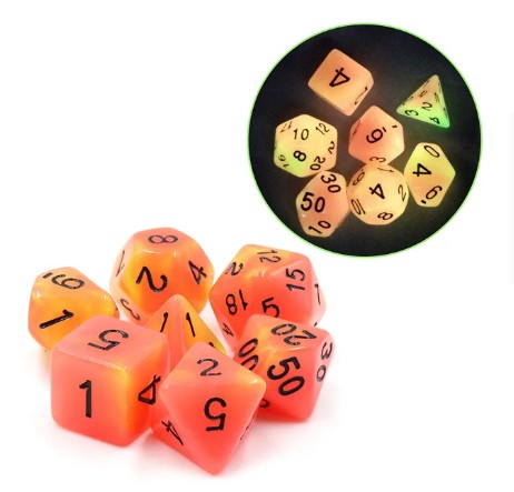 7 Piece set of Orange and Yellow Swirl Glow In the Dark with Black numbers.