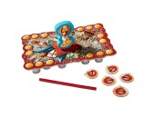 King Leo dozes off now and then, although he should really be keeping an eye on his valuable silver treasure! This is the chance that the players have been waiting for! They slip into the role of daring thieves and try to retrieve the silver from underneath the game board using a wooden stick. Then they must carefully place the nuggets on top of the game board. A really wobbly affair that requires skill and a steady hand. And of course, they must not get caught by King Leo.
